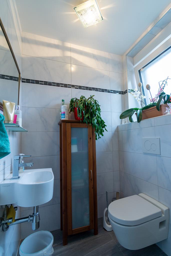 Über die Treppe hinauf, gelangen Sie in das Obergeschoss. Hier finden Sie drei gemütliche Schlafzimmer, welches eins davon auch sehr geräumig ist und der heranwachsende Teenager sich frei entfalten kann. Das Badezimmer besticht mit gehobener Ausstattung wie der großen Eckbadewanne und der ebenerdig begehbaren Dusche.
