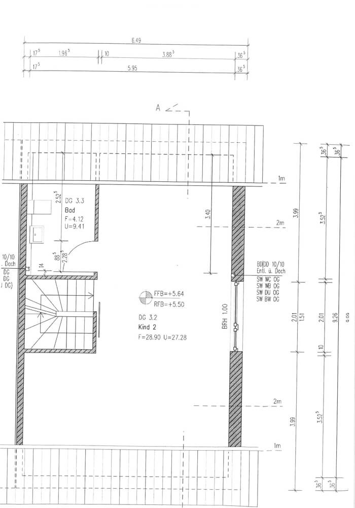 Das ausgebaute Dachgeschoss ist zum jetzigen Stand ein geräumiges Elternschlafzimmer mit Duschbad und WC.