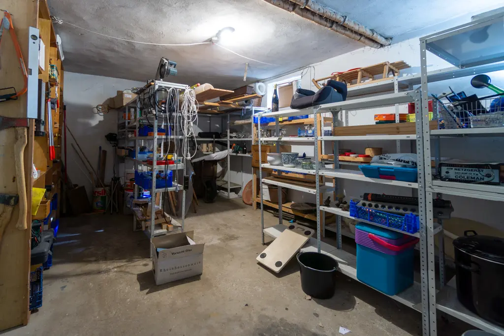 Über den Flur gelangen Sie in das Untergeschoss des Objekts. Hier befindet sich die Einliegerwohnung mit einem direkt verbundenen Eingang. Die Wohnfläche beträgt hier ca. 84 m2. Die Wohnung können Sie auch direkt über den separaten Eingang an der Seite des Hauses erreichen. Ausgestattet ist diese mit einem Wohn-Schlafbereich, Küche sowie einem Badezimmer mit Dusche und einer großen Diele. Des weiteren befindet sich ein geräumiger Kellerraum sowie der Heizungsraum auf dieser Ebene.