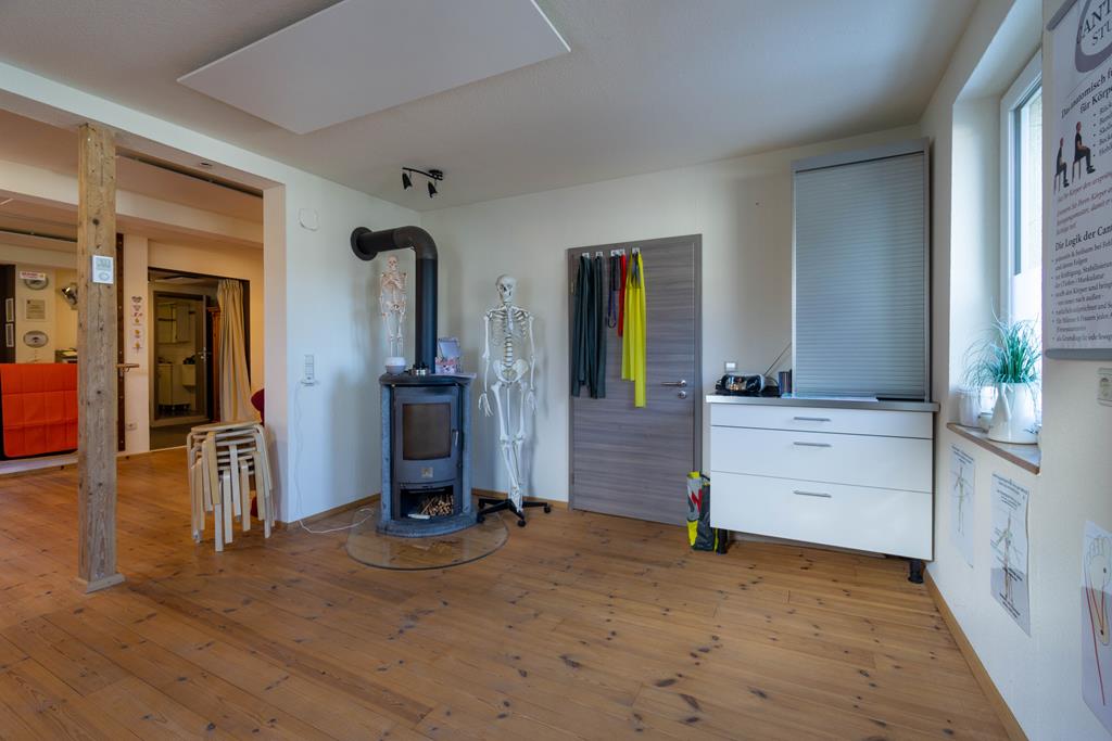 Das Erdgeschoss verfügt über eine großzügige Diele von der aus Sie in den gemütlichen Wohn-Essbereich gelangen. Hier wurde ein wunderschöner Dielenboden verlegt. Ein Specksteinofen und eine Infrarotheizung sorgen für angenehme Wärme und eine Wohlfühlatmosphäre. Von der Diele aus erreichen Sie außerdem noch das große Tageslichtbadezimmer mit Badewanne, WC und einer großzügigen und ebenerdigen Dusche.