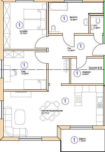 - Jede Wohnung ist mit einem Balkon ausgestattet